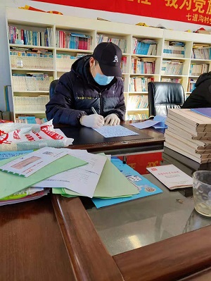 图三 2020级学生宋鑫祥,在通化县果松镇七道沟村支部核查村民出行信息