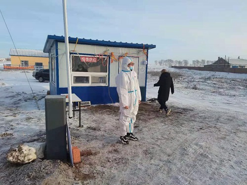 汽车工程学院学生李云平、马铭君在扶余市参与疫情防控工作。每天天蒙蒙亮起床,穿上厚重的冬装,冬装外面还要套上不透风的防护服。他们的主要工作是在户外排查居民信息、排查车辆信息。一月份的户外气温在零下20度左右,有的时候在外面一站就是一天,为了减少上卫生间,穿上防护服后水和饭都不敢多吃,冷了就绕着岗位周围多跑几圈。此时的他们身体上虽然痛苦,但是内心却无比坚定,因为他们坚定会看见“春天”的到来。