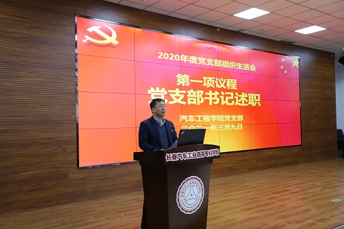 2021年3月9日下午,汽车工程学院党支部在318会议室召开了专题组织生活会,会议由党支部书记赵宇同志主持,校督导组成员胡国良副校长与党委组织部宋启娟和支委会成员参加了会议。会上党支部书记赵宇同志汇报了2020年度党支部的工作情况及会议准备情况并代表班子进行对照检查。随后党支部支委成员本着对自己、对同志、对组织、对事业高度负责的态度,严肃认真地开展了批评和自我批评。会议凸显出讲党性不讲私情、讲真理不讲面子,严肃认真提意见,满腔热情帮同志的氛围,在红红脸出出汗中达到了“团结—批评—团结”的会议目的。胡国良副校长对本次组织生活会给予了充分的肯定,他指出要充分发挥党员的先锋模范作用,发挥基层党支部的党建引领作用和战斗力,推动学院以更饱满的姿态迎接中国共产党成立一百周年。