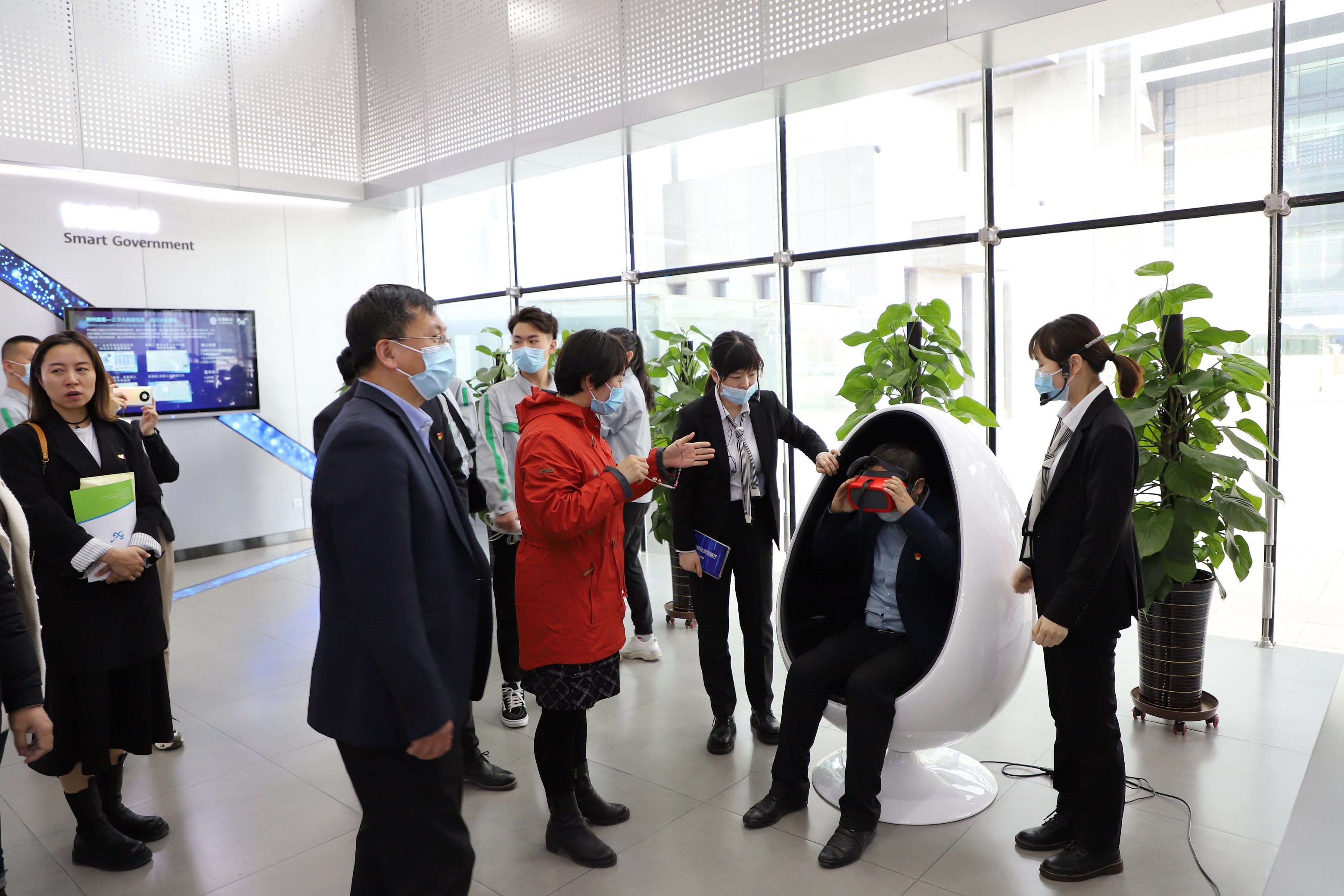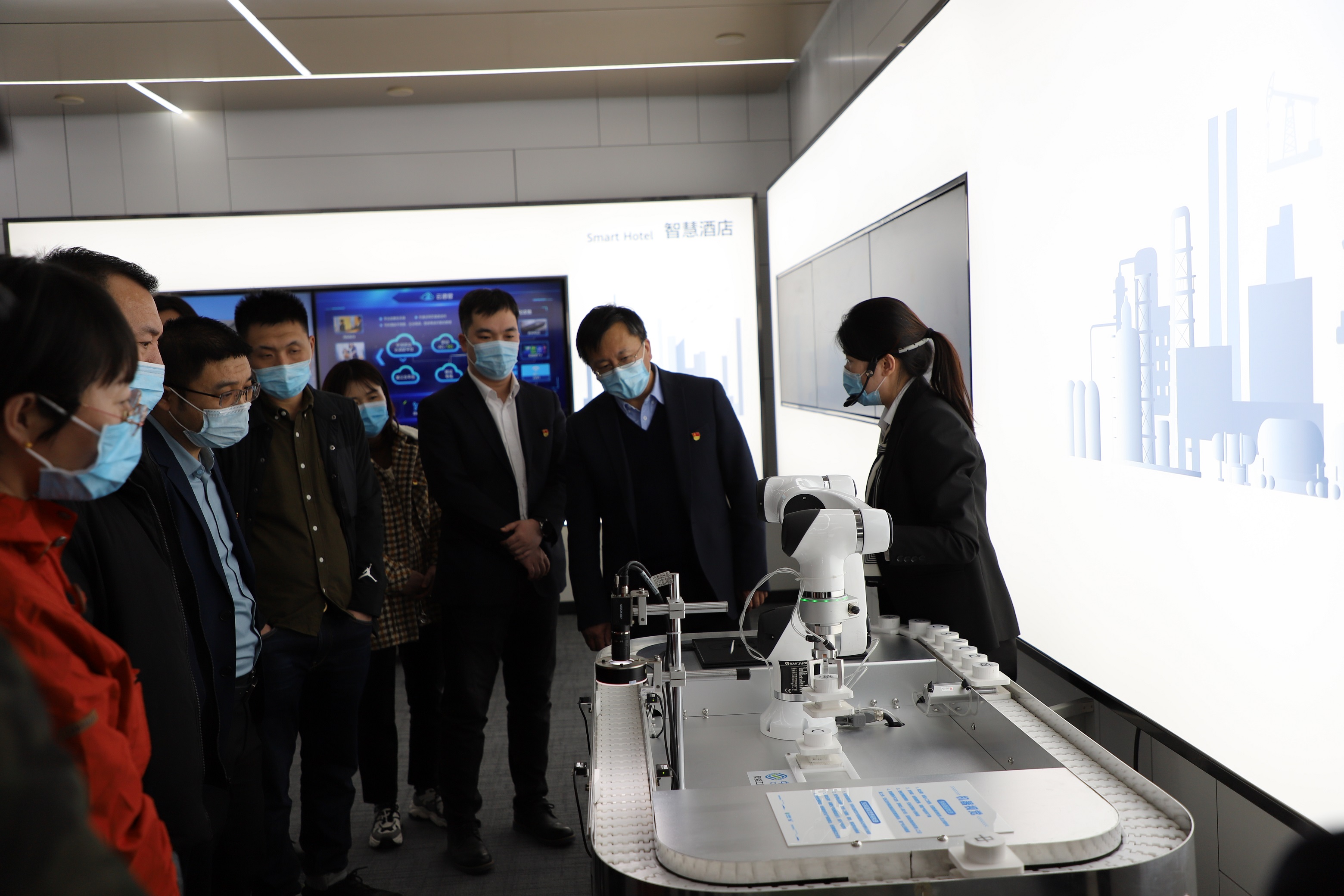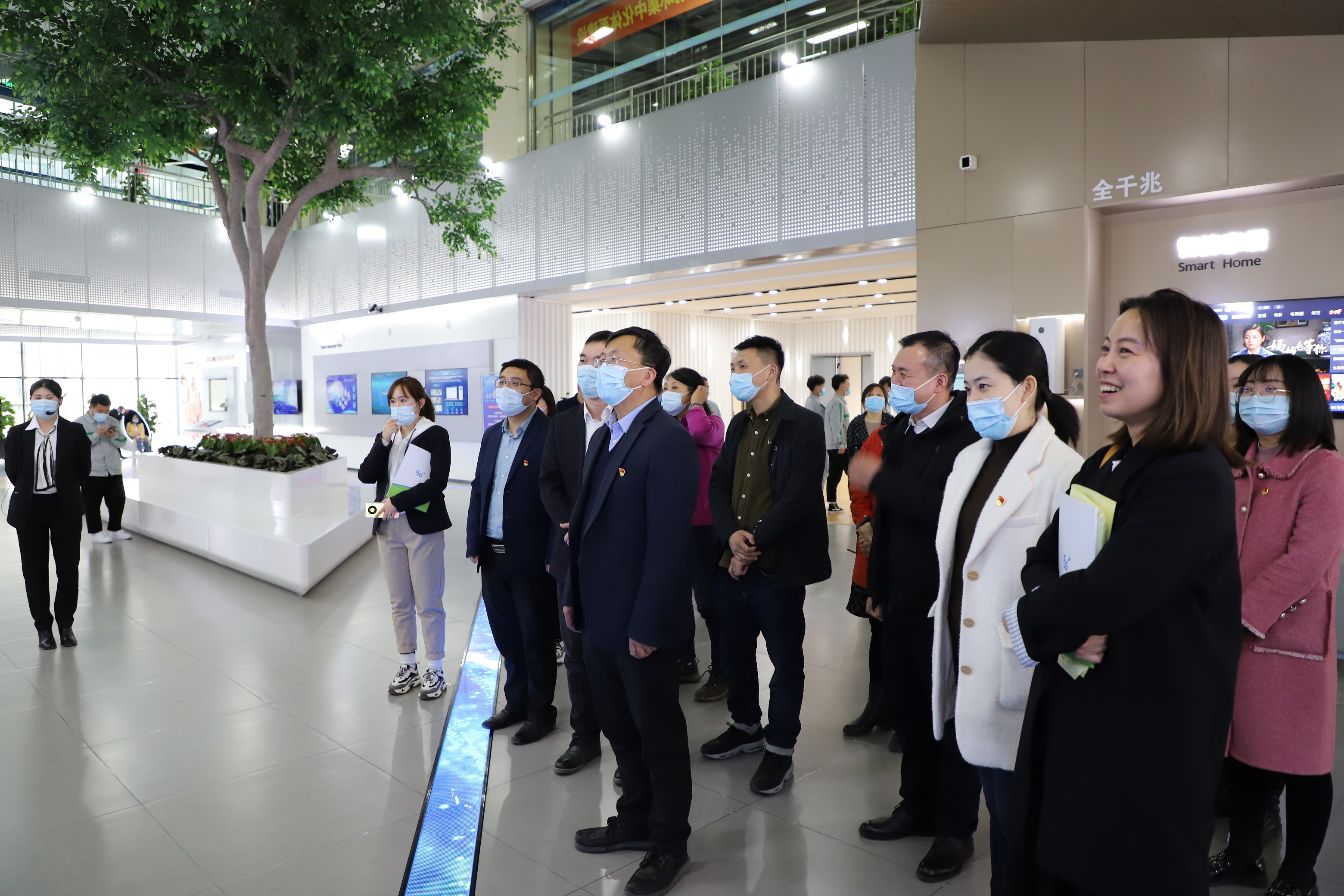 我院全体党员同志及学生代表随企业陪同人员参观了移动通讯集团灵犀展厅相关的先进板块,包括智慧政企、智慧党建、智慧工业、智慧能源、智能终端等。