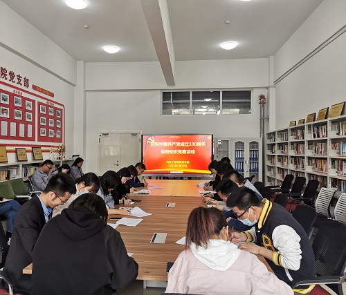 为庆祝建党100周年,营造学党史、知党情、跟党走的浓厚氛围,进一步丰富党史学习教育内容,4月29日上午,汽车工程学院党支部组织全体教师在学院318会议室开展庆祝建党100周年保密知识竞赛答题活动。