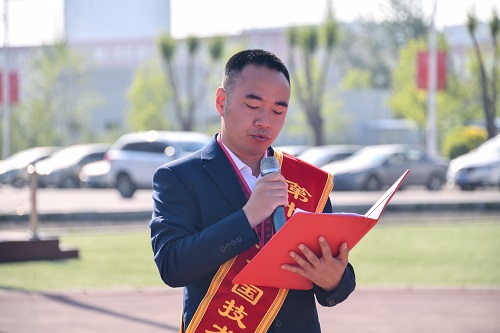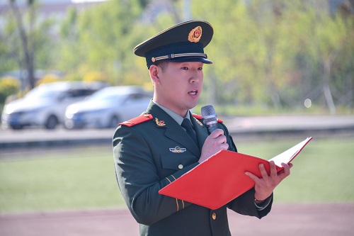 优秀学生退伍兵孙翊博同学代表汽车工程学院全体学生发言。号召全体同学培养团结奋进、敏智笃行的精神;肩负立得修身、技能报国的重任;永奉工匠精神为圭臬,胸怀国车复兴之梦想,勠力同心为我校双高建设和我国民族自主汽车品牌建设奉献自己的力量!