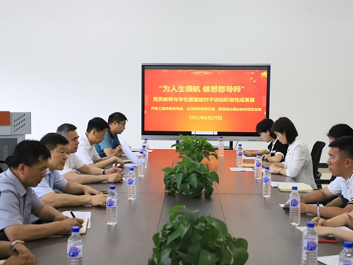 为更好继承发扬党的优良传统,按照党中央关于在党史学习教育中开展“我为群众办实事”实践活动的安排部署,切实为群众办实事、办好事、办身边事,不断提升广大群众的获得感、幸福感、满足感。为了检验活动阶段性成果、凝结共识、分享经验,6月29日汽车工程学院党支部、公共教学部党支部、思想政治理论教研部党支部联合举办“为人生领航做思想导师”党员教师与学生寝室结对子阶段性成果展。出席本次活动的有校党委副书记明晓辉、校纪委书记王学山、汽车工程学院院长赵宇、公共教学部部长潘孝春以及来自三个党支部的全体党员教师。活动由汽车工程学院党支部副书记马海艳主持。
