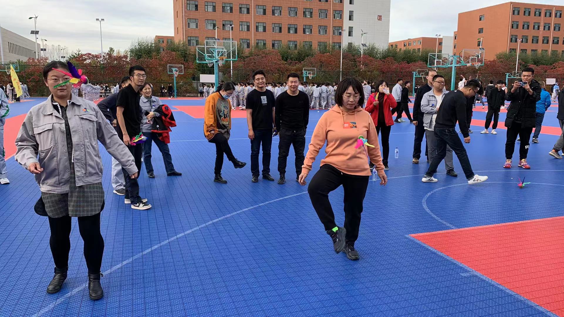 随着各个比赛项目的裁判员和记录员各就各位,活动正式开始,老师们都跃跃欲试。篮球场瞬间变成了欢乐的海洋,加油声、欢呼声充满整个校园。