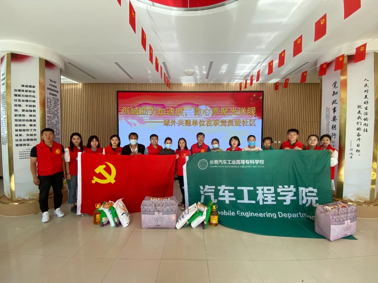 随着党史学习教育不断走深走实,结合“我为群众办实事”实践活动的要求,9月16日下午,长春汽车工业高等专科学校汽车工程学院党支部书记赵宇,副书记马海艳,副院长李文博等支委成员及第三党小组12名党员到湖光社区,开展创城及认领“微心愿”活动,把点亮“微心愿”、温暖身边人、助力社区创城工作作为践行党员先锋模范作用和志愿服务的长效机制。