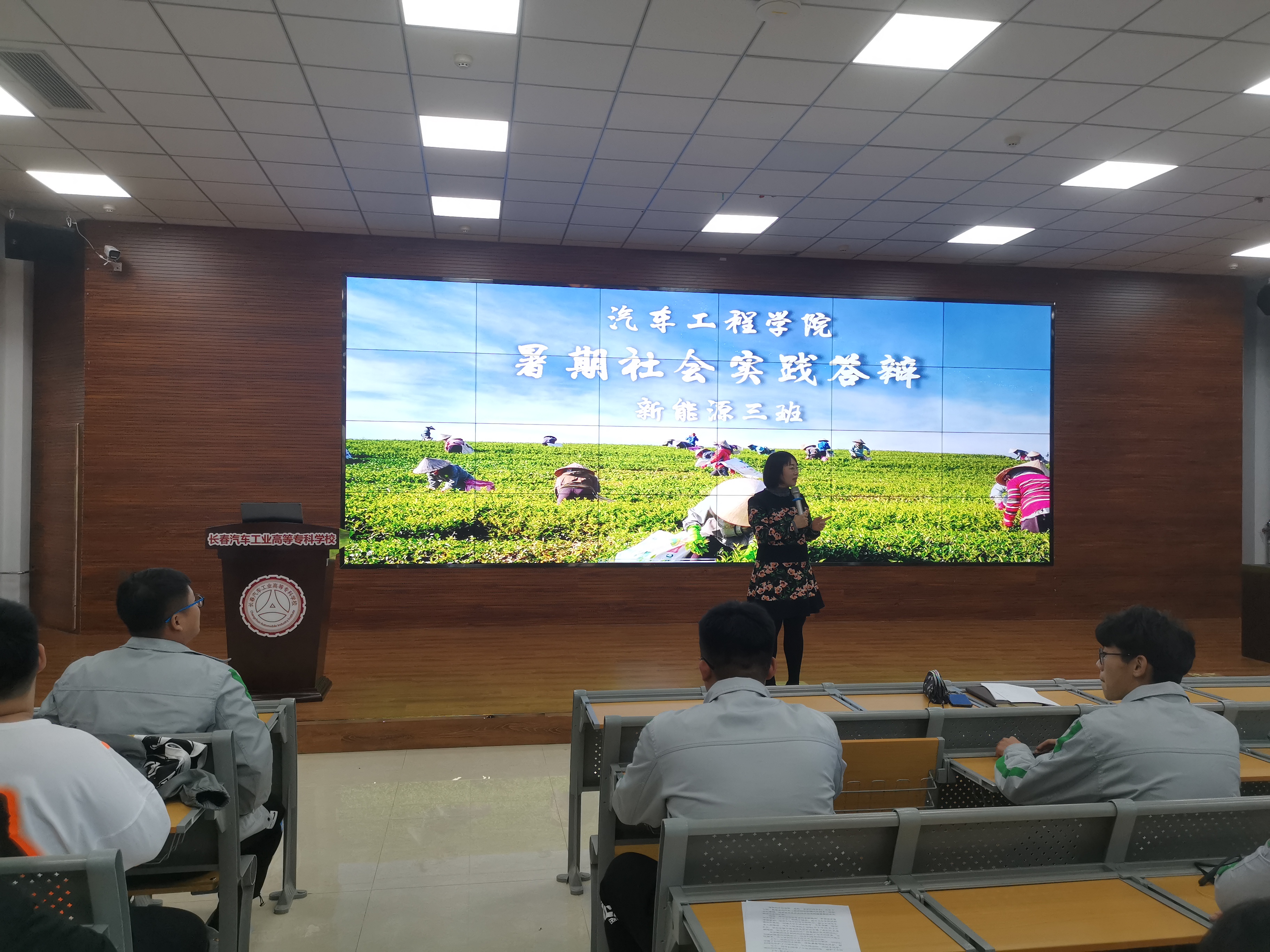 在建党百年之际,为引领汽专学子扎根祖国大地,了解世情、党情、国情、民情,推动广大青年学生躬身实践、身体力行,积极组织广大学子参加了“三下乡”暑期社会实践活动。为了检验社会实践效果,汽车工程学院于10月12日下午在301室组织了2021年大学生“三下乡”暑期社会实践答辩会,这是我校首次以答辩会的形式来展示我校暑期社会实践的成果,通过答辩,评选出一批优秀的项目团队和项目个人。汽车工程学院团总支书记杨宇,2020级辅导员石亚洲、李爽,新能源三班全体同学以及2020级全体班委成员均参加了本次答辩会。