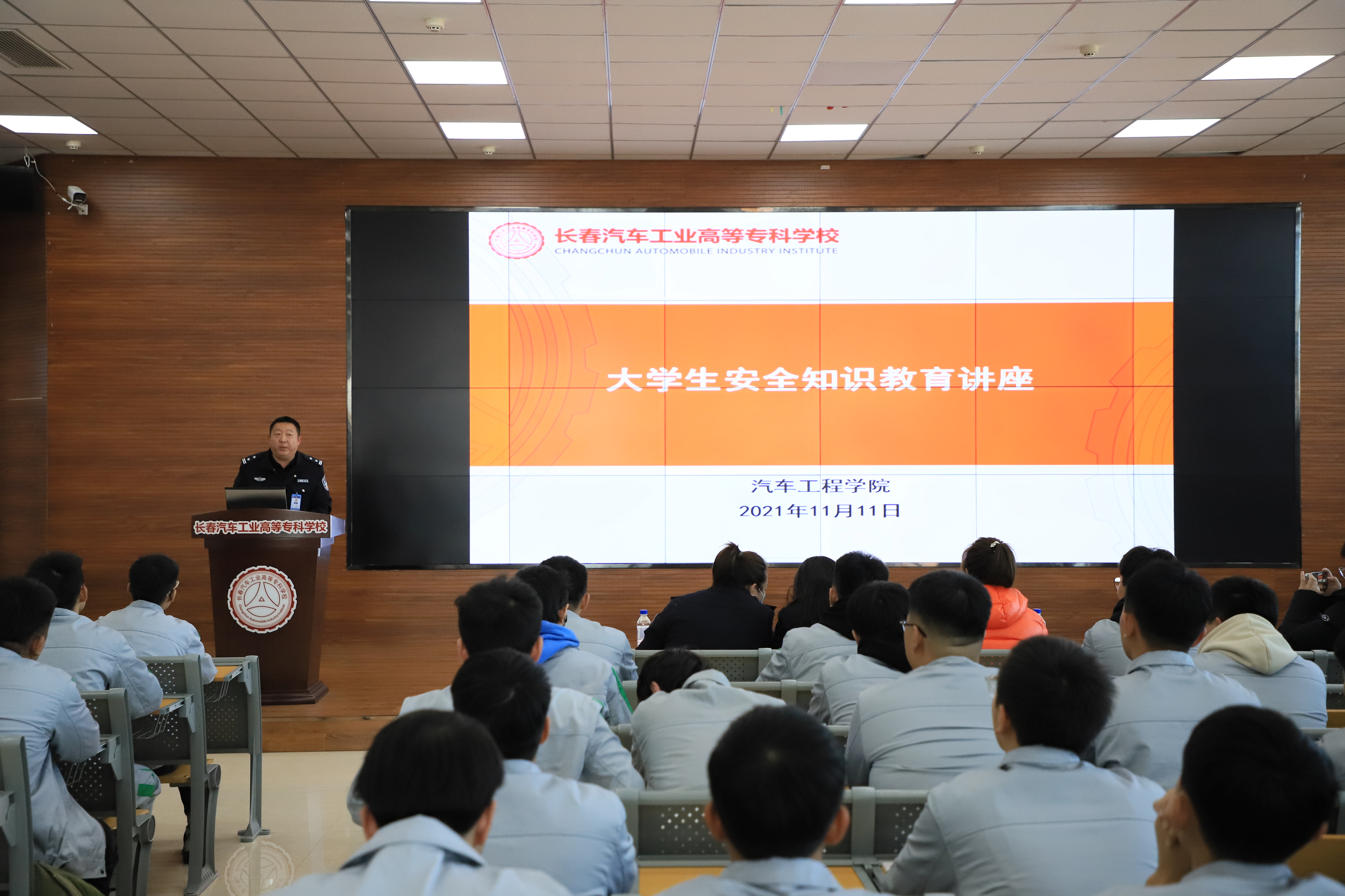 为增强我院学生遵纪守法的观念,提高安全防范意识和自我保护能力,创建平安、和谐校园,11月11日下午,汽车工程学院在301教室举办大学生安全知识教育讲座活动。本次讲座诚邀长春市汽开公安分局迎春路派出所所长王宇以及学校保卫处老师为同学们进行讲授,2020级辅导员李爽主持了本次活动。