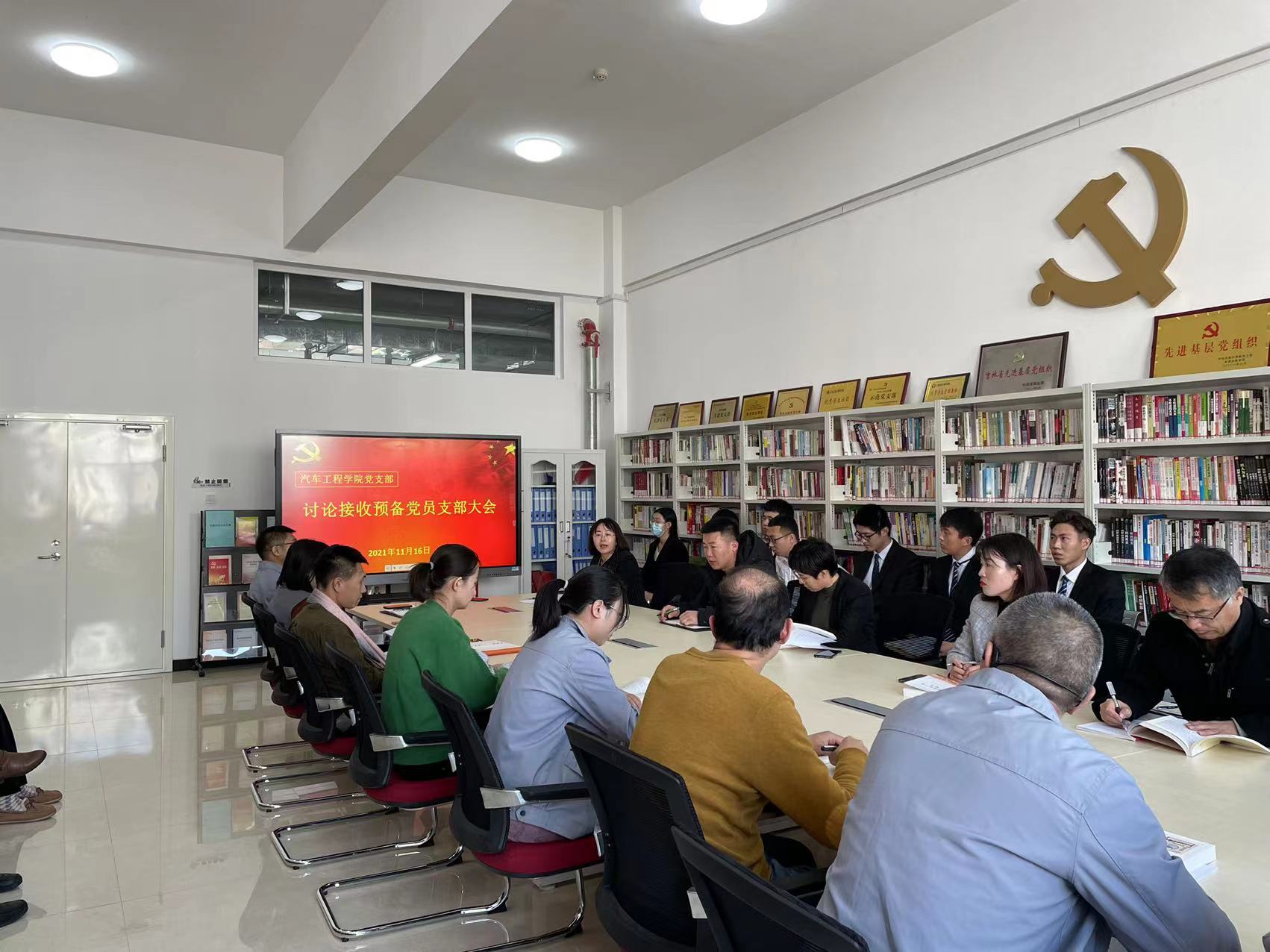 2021年11月16日13:30时,汽车工程学院在318会议室召开了汽车工程学院党支部2021年下半年接收预备党员大会。具有表决权的正式党员共计41人,到会35人;本次学生发展对象共计14人,到会6人,因实习等原因线上参会共计8人。会议由团总支书记杨宇主持。