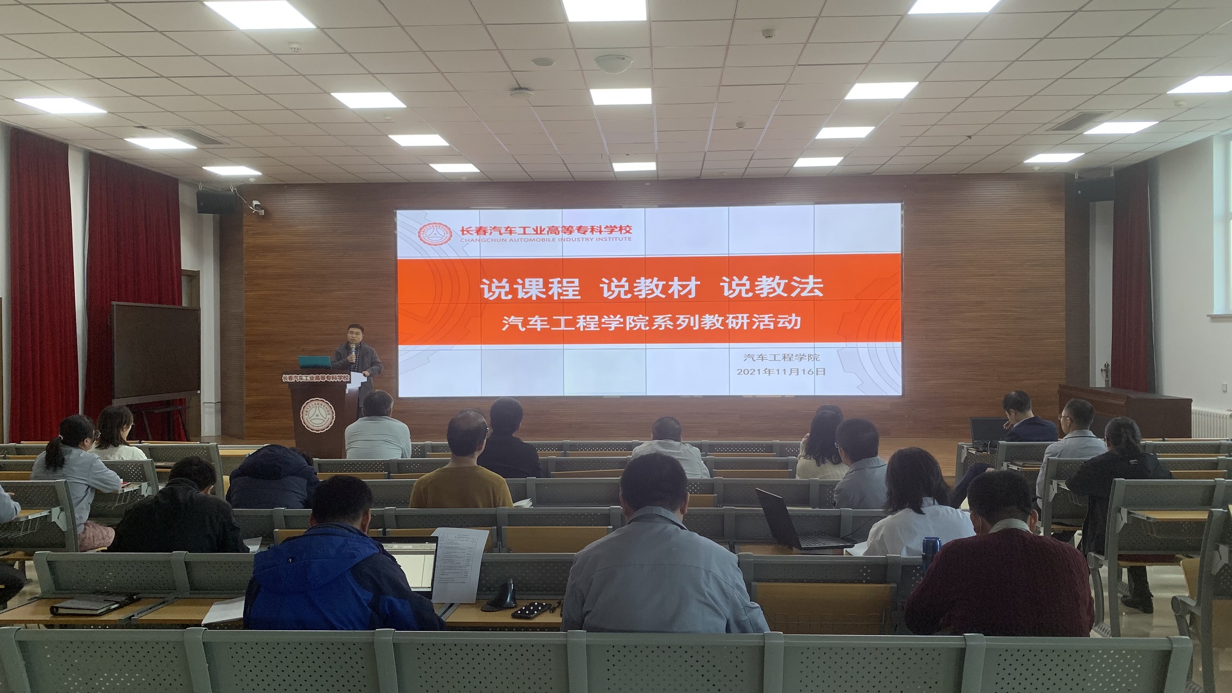 为持续优化汽车工程学院教学工作,促进学习型教师队伍的建设,将我学院三教 改革工作充分融入到日常教研活动中,我院于2021年11月16日举行了“说教材、说课程、说教法”主题教研活动,全学院专业教师参加了此次活动,各专业教师积极参加教材、课程、教法的分析与讨论,本次教研活动取得圆满成功。
