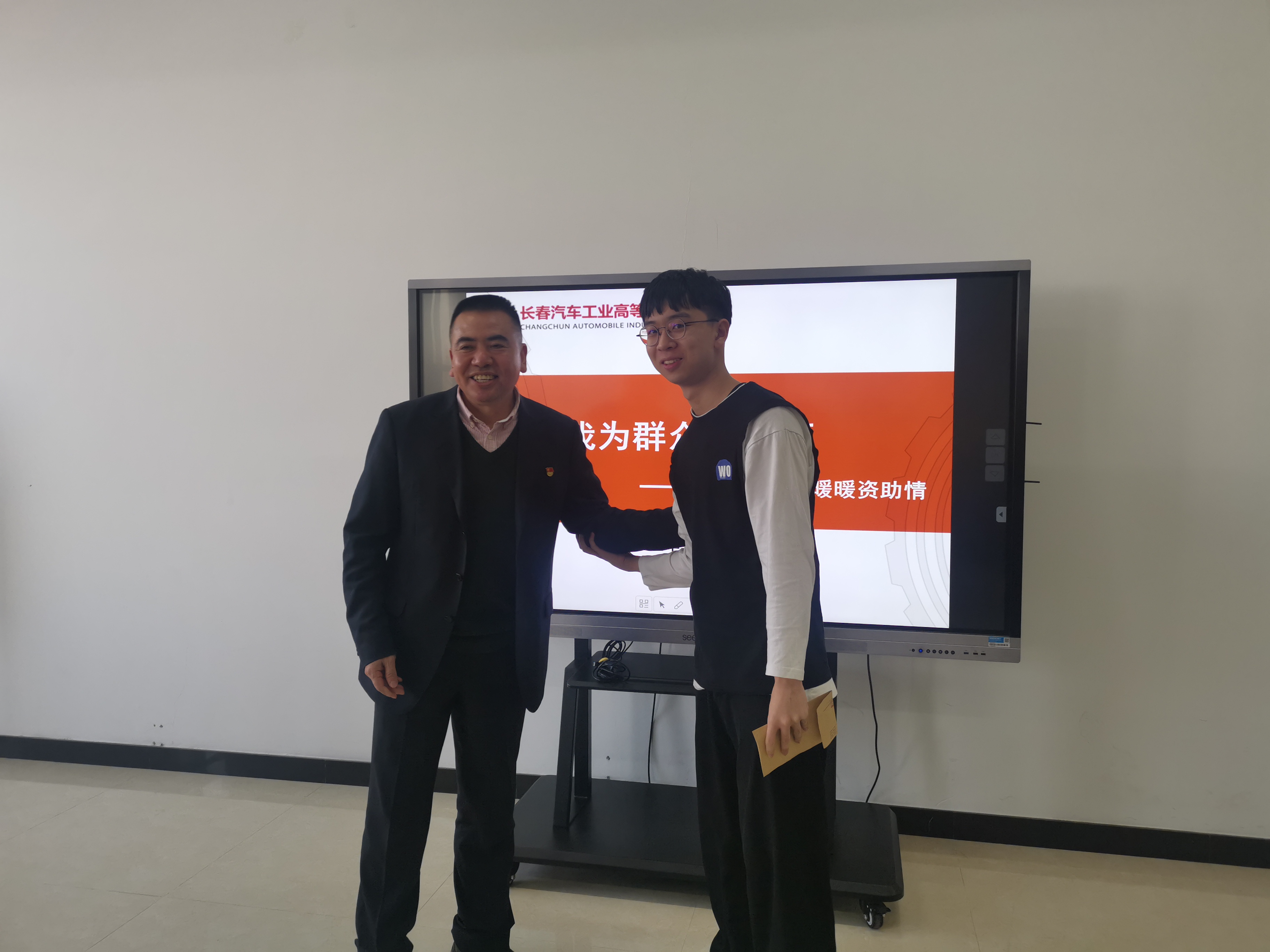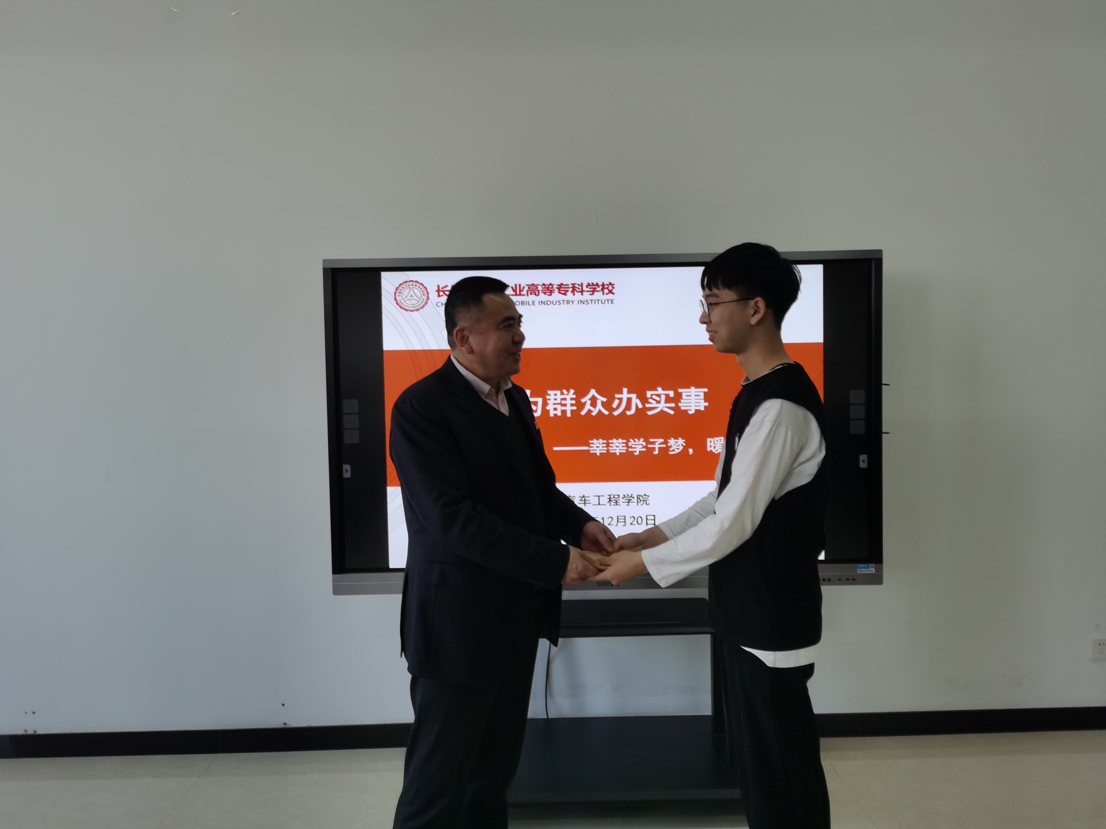 汽车工程学院在学校的有力领导下,紧密围绕立德树人的根本任务,扎实做好学生资助工作,推进精准资助和资助育人效果。2021年12月20日下午,汽车工程学院开展“我为师生办实事”——莘莘学子梦,暖暖资助情活动,长春汽车工业高等专科学校纪委书记王学山、汽车工程学院院长赵宇、副书记马海艳及受资助学生参加本次活动。