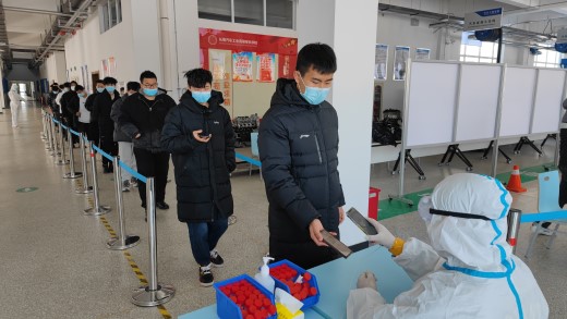疫情当前,我市新冠肺炎疫情形势不容乐观,各地区相继出现多点爆发和部分高校内局部聚集性疫情暴发等现象,疫情防控形势依然非常严峻复杂。我院为坚决落实学校疫情防控工作,保证全校师生可以有一个平安、健康的校园环境,全体学工队伍24小时坚守岗位,随时在线。在整个抗疫过程中,有两位专业课教师刘天、高伟健老师主动请缨,协助学工团队,以“快”字打头,“干”字当先,“拼”字为要,携手并肩共同战疫,在近十轮核酸检测中拼出了抗疫加速度!