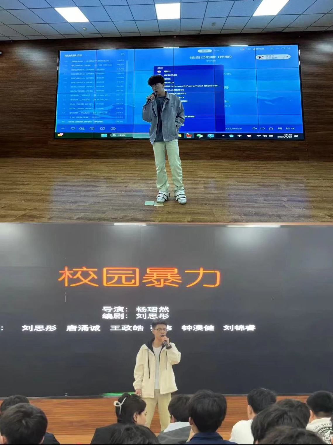 本次比赛于4月初正式启动,经过各班级紧锣密鼓地筹备、精益求精的排练和初赛的角逐,最终共有六支队伍晋级决赛。《攀比》《沟通》《校园暴力》《破茧》《寝室风波》等作品一一呈现,这些剧目均取材于真实的校园生活,主题鲜明,围绕“亲子关系、同学关系、心理抑郁、克服拖延”等内容进行创作,学生演员们分别从不同角度,用贴近生活的形式和语言,将自我成长过程中面临的困扰与蜕变搬上舞台。剧情结构清晰,同学们全情投入,在起因、发展、转折和结局中,演绎出大学生常见的心理困扰,引起共鸣,发人深思。