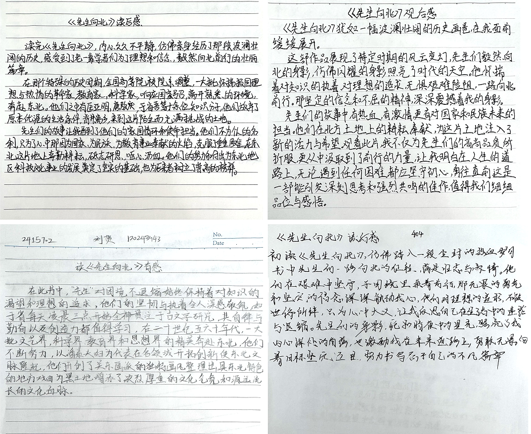 新能源二班牛聪表示:“通过阅读《先生向北》,我深刻体悟到了先辈们于艰难困苦中坚守教育初心的纯粹与坚韧,也更加深刻地理解了北上精神的内涵与价值。”汽制二班敬振召表示:“书中描述的先辈们毅然北上吉林的感人故事,不仅激发了我对这片黑土地的热爱,更点燃了我投身吉林、服务家乡的热情。”