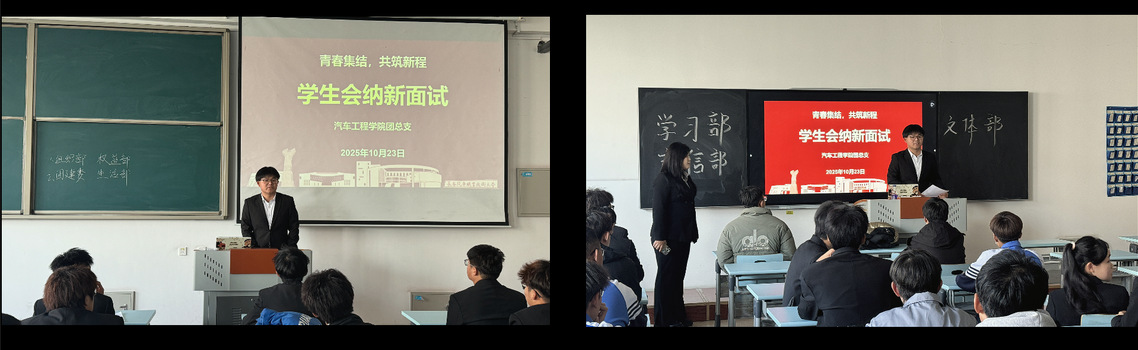 本次汽车工程学院学生会纳新工作得到2025级新生的积极响应,共有超200名同学报名参与。学院团总支书记苏冰玉、辅导员詹佳冬、杨超等担任面试官,从思想觉悟、工作规划、综合素养等维度对候选人进行全面考察。