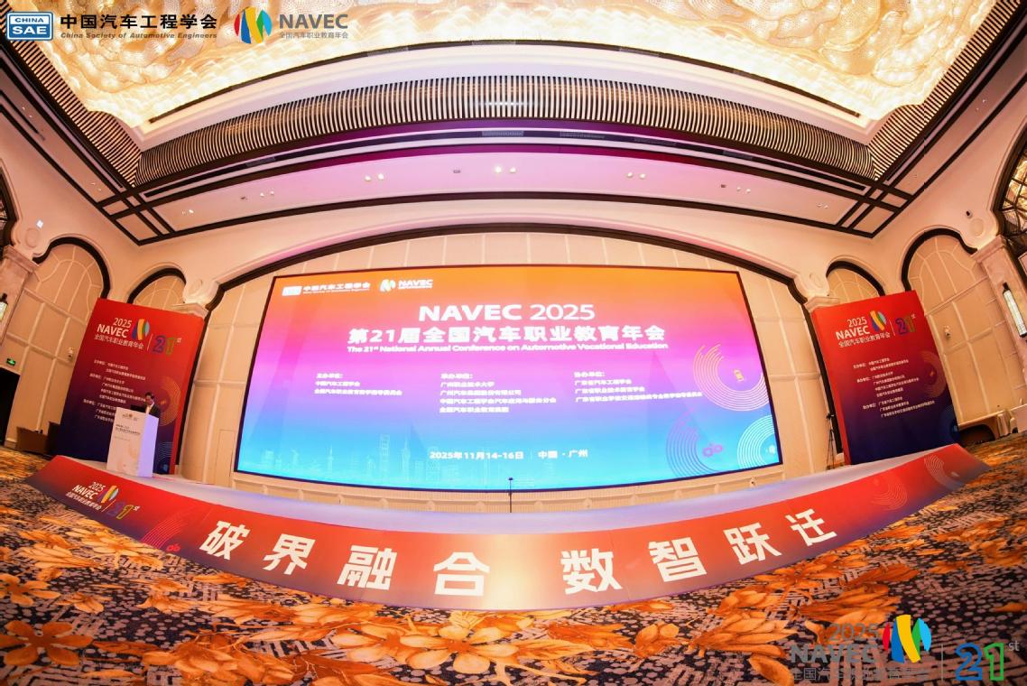 2025年11月14日-16日,由中国汽车工程学会、全国汽车职业教育教学指导委员会(以下简称“汽车行指委”)主办,中国汽车工程学会汽车应用与服务分会、全国汽车职业教育集团、广州职业技术大学承办的第二十一届全国汽车职业教育年会在广州召开。本次年会以“破界融合,数智跃迁”为主题,汇聚政府部门、企业、科研机构及院校代表1000余人,通过主论坛、专题分论坛、成果展等多元形式,共探汽车职业教育适配产业升级的发展路径。我校党委书记、校长李春明、副校长韩萍一行6人参加了本次会议,同时携“新双高”建设核心成果精彩亮相,全方位展现“中国汽车人才摇篮”的办学实力与创新活力。