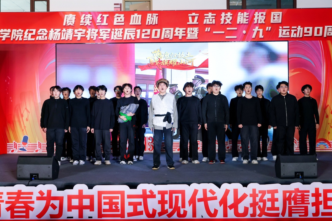 整场演出以红色精神传承为主线,通过三个篇章,铭记历史、吾辈自强;情满春城、文韵悠长;青春逐梦、唱响未来将杨靖宇将军的抗日爱国事迹与“一二·九”运动的革命精神融入丰富多彩的节目之中,或重温烽火岁月的情景剧,或激昂高亢的音诗画,亦或铿锵有力的合唱表演,一个个精心编排的节目轮番上演,让在场师生沉浸式感受革命先辈的家国大义与青年一代的使命担当,整场晚会在学生干部合唱《奔跑》中落下帷幕。