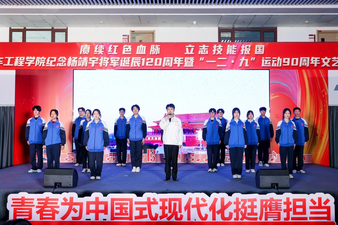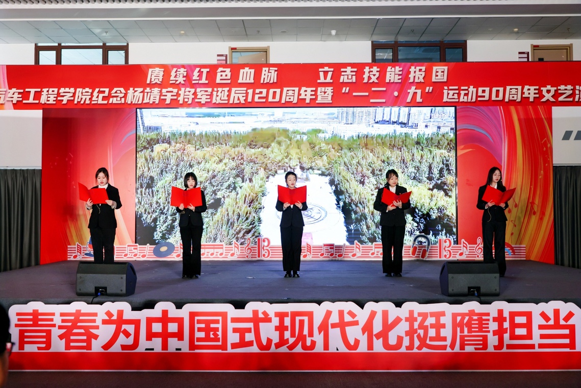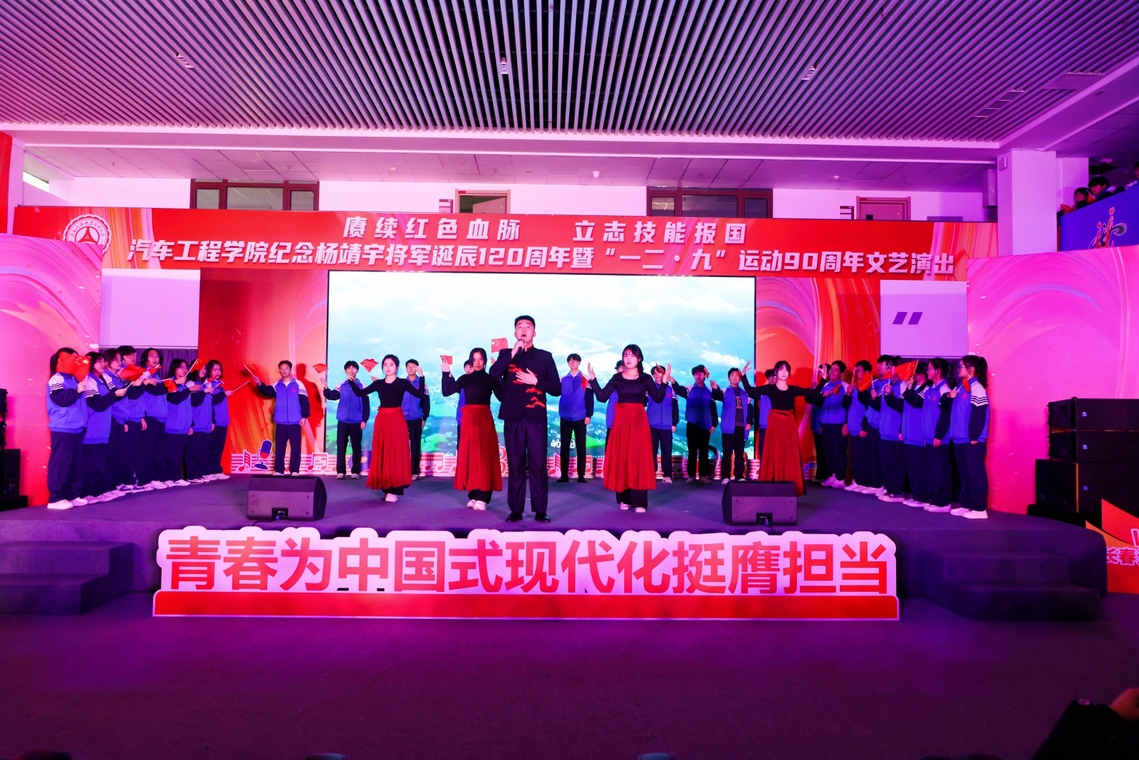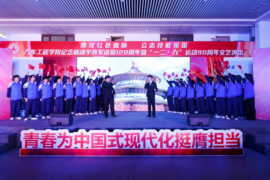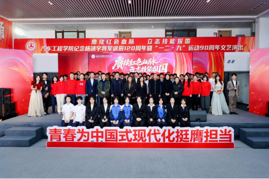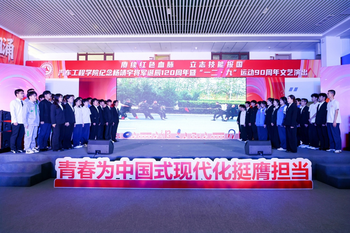 为厚植师生家国情怀,营造尊师重教浓厚氛围,进一步激发全院师生投身教育教学与技能学习的责任感、使命感,12月16日13时30分,汽车工程学院党总支在学校红旗品牌服务中心隆重举办“赓续红色血脉 立志技能报国”纪念杨靖宇将军诞辰120周年暨“一二·九”运动90周年文艺演出。长春汽车职业技术大学党委副书记赵娜、学生处处长张春雨以及教务处、学生处(团委、大学生就业指导中心)、各学院学生工作负责人受邀出席活动。现场还特别邀请富民街道富民社区党委书记解程、副书记王丽等参加文艺演出。此外,汽车工程学院院长李东兵、学生工作负责人刘通、学院教师代表与2025级全体学生齐聚现场,共同观看演出。