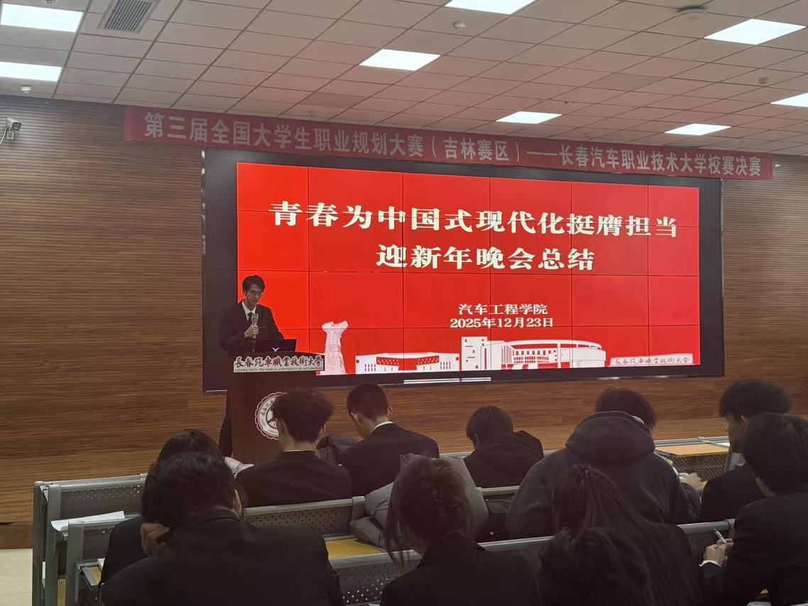 为总结过往工作经验,表彰先进树立榜样,凝聚青春奋进力量,2025年12月23日下午,汽车工程学院迎新年文艺演出总结暨学生会年终述职大会在学院301阶梯教室顺利召开。团总支书记苏冰玉,辅导员詹佳冬、杨超及学生会全体成员齐聚一堂,共同回顾耕耘硕果,展望崭新征程。